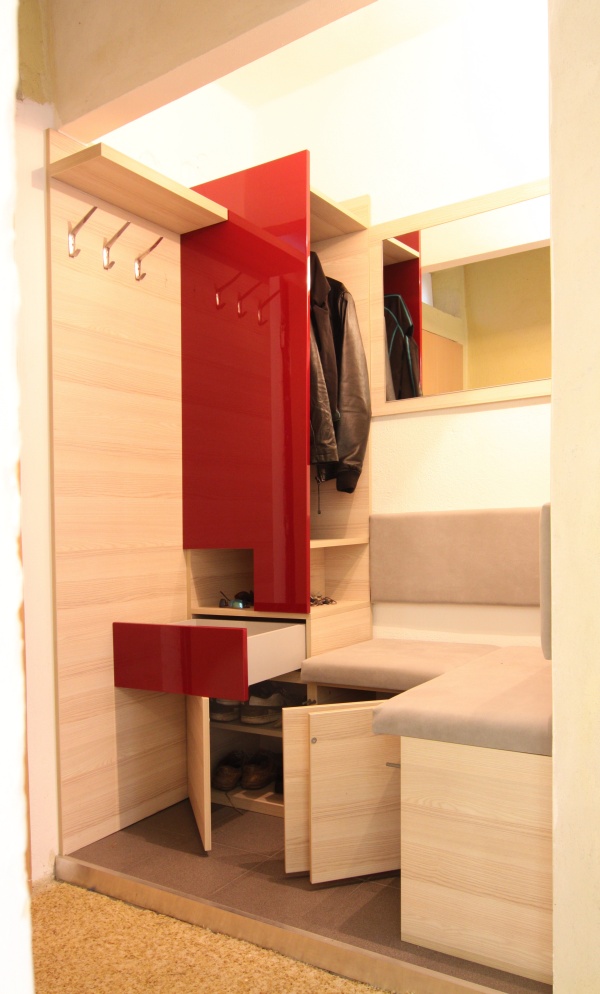 - každý máme svůj botník a jedna rohová skříňka je dosud volná. Tam se zabydlí bačkory pro návštěvy a v budoucnu dětské botičky.